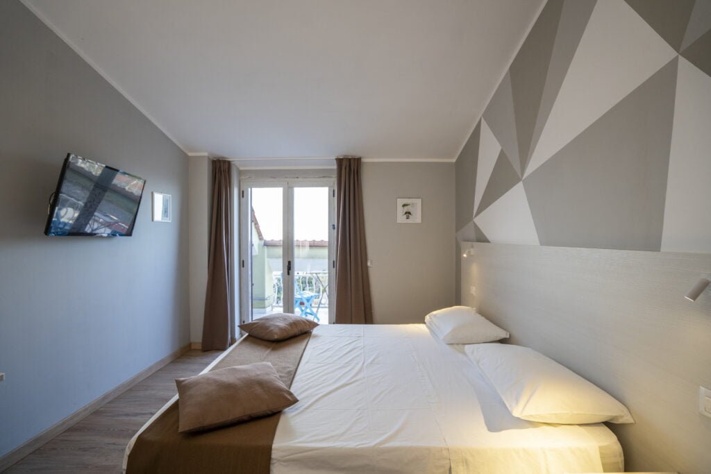 La camera 201, di dimensioni di circa 30 mq, dispone di un letto matrimoniale e un ampio bagno. Tra i servizi offerti vi sono uno smart TV, un ampio balcone, aria condizionata e un mini frigo.